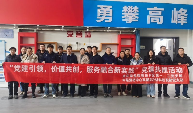 2025年12月24日,咸陽陶瓷院管莊片區黨總支與中航工業復合材料技術中心超高溫復合材料研發部黨支部聯合開展“鏈”上黨建共建活動。咸陽陶瓷院副總經理、管莊片區黨總支書記王春朋,中航工業復合材料技術中心超高溫復合材料研發部黨支部副書記陳明偉出席活動并講話。